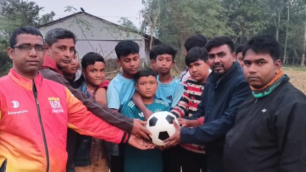 কালাইয়ে যুব অধিকার পরিষদের উদ্যোগে শিশু-কিশোরদের মাঝে ফুটবল উপহার