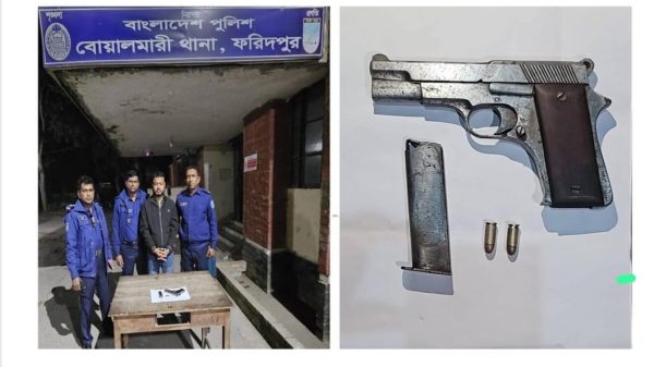ফরিদপুরে যৌথবাহিনীর অভিযানে উপজেলা যুবদলের যুগ্ম আহবায়ক অস্ত্রসহ আটক, উদ্ধার পিস্তল ও গুলি