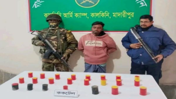কালকিনিতে যৌথবাহিনীর অভিযানে ২৩টি ককটেলসহ যুবক আটক