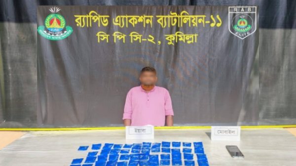 কুমিল্লায় র্যাবের অভিযানে ১০,০০০ পিছ ইয়াবা’সহ আটক-১