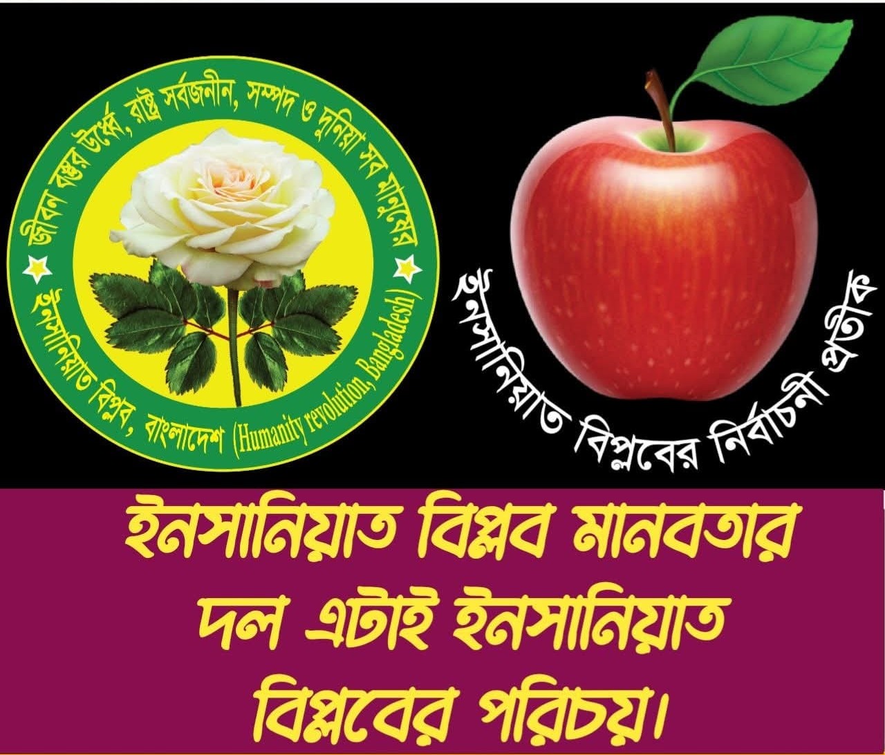 পরিশেষে সব ধর্মের সব মত পথের সব মানুষের জন্য মানবতার মুক্তির উৎস প্রানাধিক প্রিয়নবীর দেয়া সমান নিরাপত্তা -অধিকার-স্বাধীনতা-মর্যাদা-মালিকানা-রুটিরুজি ভিত্তিক ও একক গোষ্ঠীর স্বৈরদস্যুতা মুক্ত বৈষম্যহীন অসাম্প্রদায়ীক সর্বজনীন মানবতার রাষ্ট্র প্রতিষ্ঠার লক্ষ্যে ইনসানিয়াত বিপ্লব বাংলাদেশের প্রতিক আপেল মার্কায় ভোট দিয়ে নিজের ও সব মানুষের মুক্তির আহবান জানানো হয়।