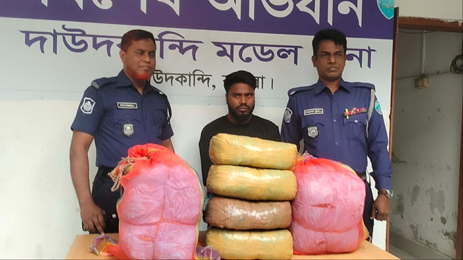 ঘটনার সত্যতা নিশ্চিত করে কুমিল্লা দাউদকান্দি মডেল থানার অফিসার ইনচার্জ (ওসি) এম আব্দুল হালিম জানান, ডিউটিরত অবস্থায় উপজেলার ঢাকা-চট্টগ্রাম মহাসড়কের টোলপ্লাজা এলাকা থেকে ঢাকাগামী একটি সাদা রঙের প্রাইভেটকারকে সন্দেহ হলে আমার থানার পুলিশ নির্দিষ্ট স্থানে অবস্থান নিয়ে প্রাইভেটকারে তল্লাশি চালায়। এ সময় সন্দেহভাজন প্রাইভেটকারটি তল্লাশি করে প্রাইভেটকারের ভিতরে থাকা ১৮ কেজি গাঁজাসহ ১ জনকে গ্রেফতার করা হয়। এসময় মাদক পরিবহণ কাজে ব্যবহৃত প্রাইভেটকারটি জব্দ করা হয়।