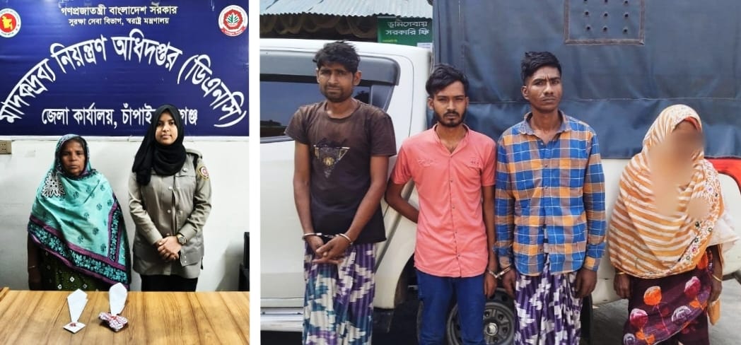 কানসাট বাজারের মোঃ রবুর ছেলে মোঃ সুহেল (৩৪), কানসাট বাজারের মোঃ রবুর ছেলে মোঃ মুরুজ আলী (২৬), পিরোজপুর গ্রামের মৃত হানিফ মন্ডলের মেয়ে মোসা: ইরিনা বেগম (২০)। সকলের থানা: শিবগঞ্জ, জেলা: চাঁপাইনবাবগঞ্জ। অভিযানে তাদের কাছ থেকে সর্বমোট ৫২ গ্রাম গাঁজা উদ্ধার করা হয়। পৃথকভাবে উদ্ধারকৃত আলামত হিসেবে ৫২ গ্রাম গাঁজা উদ্ধার করেন । অপরদিকে, চাঁপাইনবাবগঞ্জ জেলার শিবগঞ্জ থানাধীন কানসাট শিকারপুর গ্রামস্থ এলাকা। আসামীর হচ্ছে শিবগঞ্জ উপজেলার কানসাট শিকারপুর গ্রামের মোঃ রবু আলীর স্ত্রী মোসাঃ ছবি আরা বেগম (৫৫), উদ্ধারকৃত হেরোইনের পরিমাণ ০৫ গ্রাম।আসামীর বিরুদ্ধে উপ পরিদর্শক মো: মুস্তাফিজুর রহমান মামলার বাদী হয়ে শিবগঞ্জ থানায় একটি নিয়মিত মামলা দায়ের করে। এই ঘটনায় উপ-পরিদর্শক মোঃ মুস্তাফিজুর রহমান প্রসিকিউশন দাখিল করেন। পরে সহকারী কমিশনার (ভূমি) ও বিজ্ঞ নির্বাহী ম্যাজিস্ট্রেট মোঃ তৌফিক আজিজ ভ্রাম্যমাণ আদালত পরিচালনা করে প্রথম, দ্বিতীয় ও তৃতীয় আসামিকে ১৬ (ষোল) দিনের বিনাশ্রম কারাদণ্ড এবং চতুর্থ আসামিকে ০২ (দুই) দিনের বিনাশ্রম কারাদণ্ড প্রদান করেন। পাশাপাশি প্রত্যেককে ১০০ (একশত) টাকা করে অর্থদণ্ড প্রদান করা হয়।