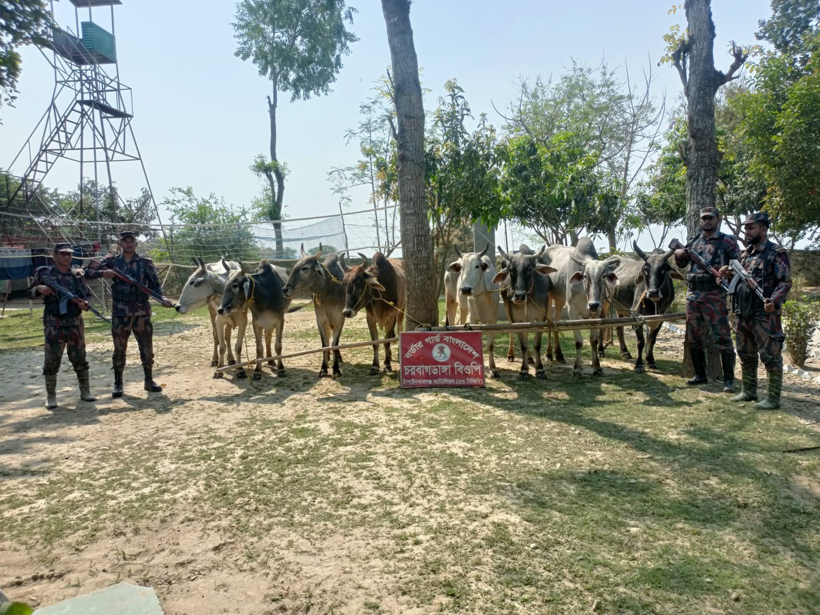 চাঁপাইনবাবগঞ্জ সীমান্তে পৃথক পৃথক অভিযানে ১০টি ভারতীয় গরু জব্দ করেছে চাঁপাইনবাবগঞ্জ ব্যাটালিয়ন (৫৩ বিজিবি)। গোপন সংবাদের ভিত্তিতে (০২ মার্চ) সকাল ৬টা ৩০ মিনিট থেকে ৮টা পর্যন্ত সময়ের মধ্যে ৫৩ বিজিবির বিশেষ টহলদল দুটি পৃথক অভিযান পরিচালনা করে এসব গরু জব্দ করে। বিজিবি সূত্রে জানা যায়, ব্যাটালিয়নের অধীনস্থ চরবাগডাংগা বিওপি চাঁপাইনবাবগঞ্জ সদর থানার সুন্দরপুর ইউনিয়নের কালিনগর গ্রাম থেকে ৮টি এবং বাখেরআলী বিওপি সদর থানার চরবাগডাংগা ইউনিয়নের চাচ্চুরচর গ্রাম থেকে ২টি ভারতীয় গরু জব্দ করতে সক্ষম হয়। জব্দকৃত ১০টি গরুর আনুমানিক বাজার মূল্য প্রায় ২২ লক্ষ টাকা বলে জানানো হয়েছে। জব্দকৃত গরুগুলো চাঁপাইনবাবগঞ্জ শুল্ক কার্যালয়ে জমা দেওয়া হয়েছে। উল্লেখ্য, গত ফেব্রুয়ারি ২০২৬ মাসে প্রায় ৭৫ লক্ষ টাকা মূল্যের ৩৩টি গরু ও ২টি মহিষ সীমান্ত এলাকা থেকে জব্দ করেছে ৫৩ বিজিবি। চাঁপাইনবাবগঞ্জ ব্যাটালিয়নের অধিনায়ক লেফটেন্যান্ট কর্নেল কাজী মুস্তাফিজুর রহমান, পিএসসি এ বিষয়ে সত্যতা নিশ্চিত করে বলেন, সীমান্ত সুরক্ষা নিশ্চিতকরণসহ যেকোনো ধরনের চোরাচালান ও অবৈধ কার্যক্রম প্রতিরোধে বিজিবি সর্বদা তৎপর রয়েছে।