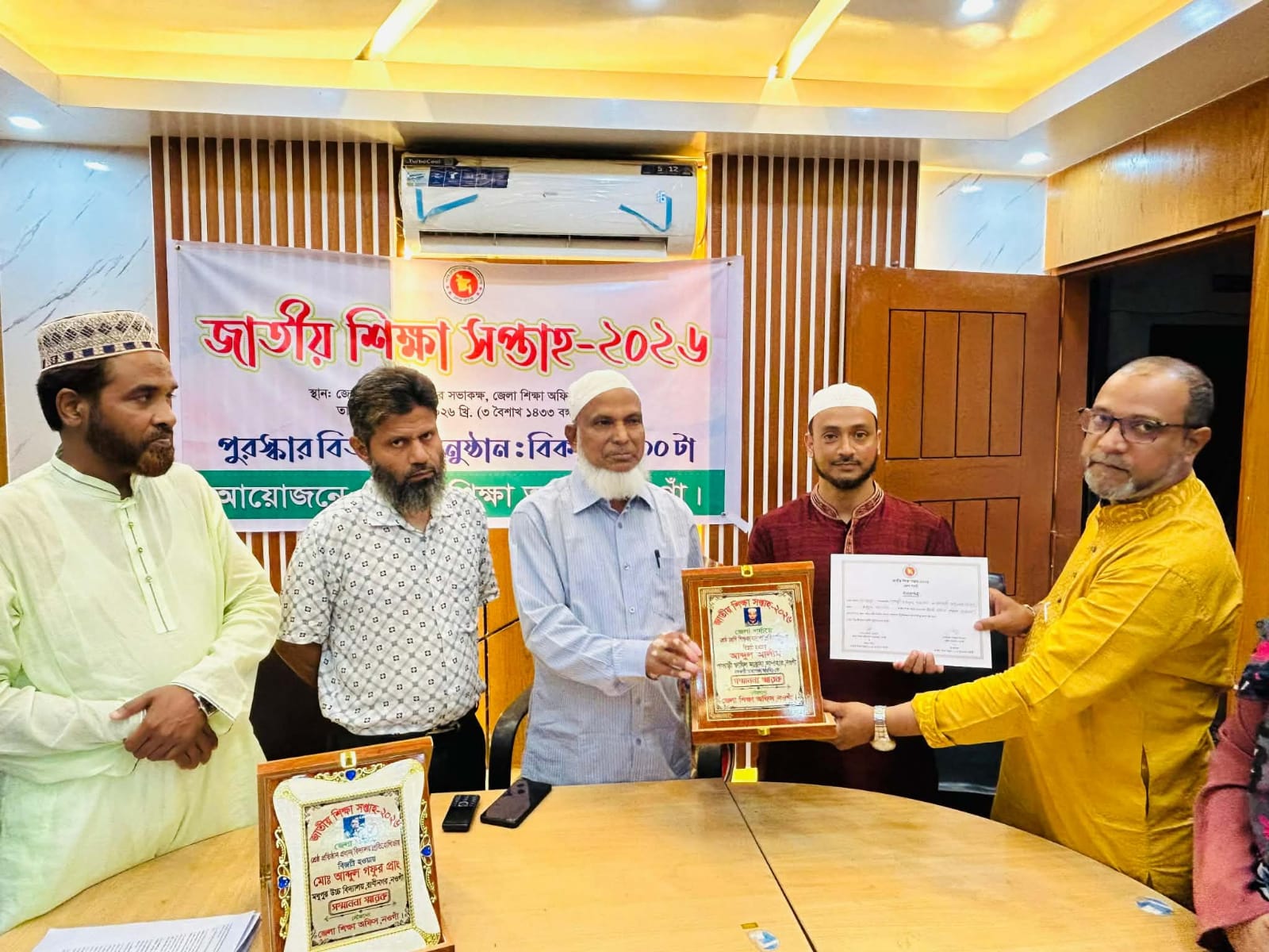 আজকে জেলা পর্যায়ে শ্রেষ্ঠত্ব অর্জনকারীদের (শুধু জাতীয় পর্যায়ে শ্রেষ্ঠত্ব অর্জনকারীদের) সম্মাননা ক্রেস্ট ও সনদ প্রদান করা হয় জেলা শিক্ষা অফিস, নওগাঁ থেকে।