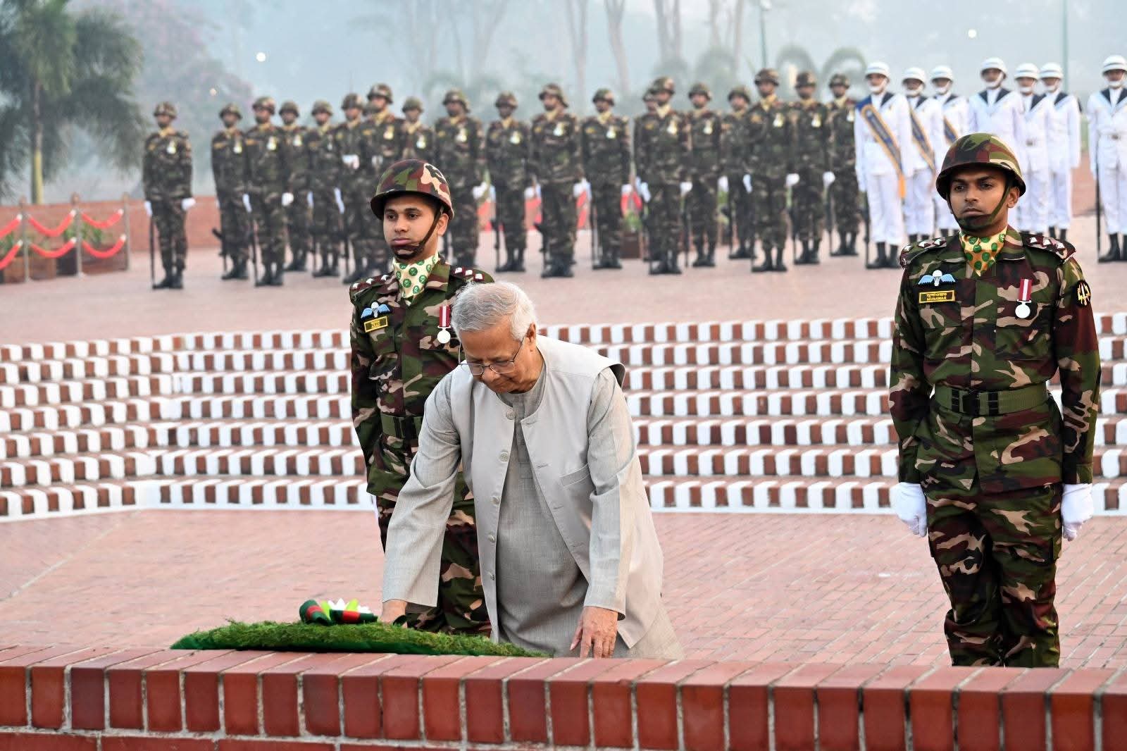 মহান বিজয় দিবস উপলক্ষে সাভারের নবীনগরে অবস্থিত জাতীয় স্মৃতিসৌধে একাত্তরের মহান মুক্তিযুদ্ধে আত্মদানকারী শহীদদের প্রতি গভীর শ্রদ্ধা নিবেদন করেছেন মহামান্য রাষ্ট্রপতি বীর মুক্তিযোদ্ধা মুহাম্মাদ শাহাবুদ্দিন চুপ্পু মহোদয় এবং প্রধান উপদেষ্টা ড. মুহাম্মাদ ইউনূস।