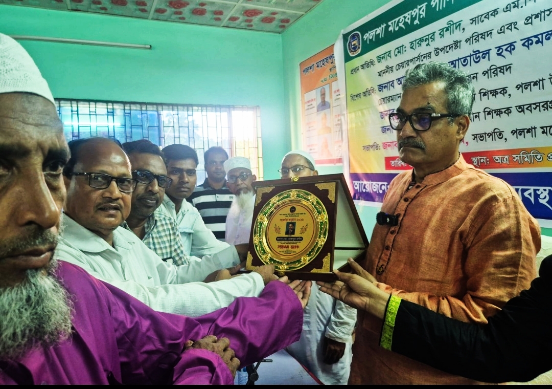 চাঁপাইনবাবগঞ্জে পলশা মহেষপুর পানি ব্যবস্থাপনা সমবায় সমিতি লিমিটেডের উদ্যোগে জেলা পরিষদের নবনিযুক্ত প্রশাসক ও সাবেক সংসদ সদস্য মোঃ হারুনুর রশীদকে সংবর্ধনা প্রদান করা হয়েছে। রবিবার (৫ এপ্রিল) বিকাল ৫টায় পলশা মহেষপুর পানি ব্যবস্থাপনা সমবায় সমিতি লিমিটেডের মাঠ প্রাঙ্গণে এ সংবর্ধনা অনুষ্ঠান অনুষ্ঠিত হয়। অনুষ্ঠানে সভাপতিত্ব করেন সমিতির সভাপতি মোঃ ফজলে রাব্বি রেনু। অনুষ্ঠানে প্রধান অতিথি হিসেবে উপস্থিত ছিলেন চাঁপাইনবাবগঞ্জ-৩ আসনের সাবেক এমপি ও জেলা পরিষদের নবনিযুক্ত প্রশাসক মোঃ হারুনুর রশীদ। বিশেষ অতিথি হিসেবে উপস্থিত ছিলেন ১নং বালিয়াডাঙ্গা ইউনিয়ন পরিষদের চেয়ারম্যান আবু হেনা মোঃ আতাউল হক কমল, সমিতির সাধারণ সম্পাদক মোঃ আমিরুল ইসলাম, পলশা উচ্চ বিদ্যালয়ের প্রধান শিক্ষক মোসলেম উদ্দিন এবং বিদ্যালয়ের অবসরপ্রাপ্ত প্রধান শিক্ষক আলহাজ্ব আবু বক্করসহ স্থানীয় গণ্যমান্য ব্যক্তিবর্গ।