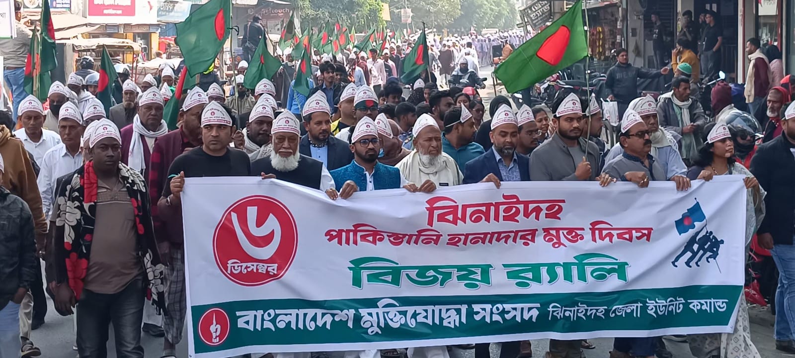 গর্ব আর শ্রদ্ধায় ঝিনাইদহে পালিত হলো হানাদারমুক্ত দিবস। ১৯৭১ সালের এই দিনে ৬ নভেম্বর পাক হানাদার বাহিনীকে পরাজিত করে ঝিনাইদহকে মুক্ত ঘোষণা করেন সাহসী মুক্তিযোদ্ধারা। দিনটিকে স্মরণীয় করে রাখতে শনিবার সকালে শহরের পুরাতন ডিসি কোর্ট চত্বর থেকে জেলা মুক্তিযোদ্ধা সংসদের উদ্যোগে একটি বর্ণাঢ্য র্যালি বের করা হয়। র্যালিটি শহরের বিভিন্ন সড়ক প্রদক্ষিণ শেষে চুয়াডাঙ্গা বাসস্ট্যান্ডে গিয়ে শেষ হয়।