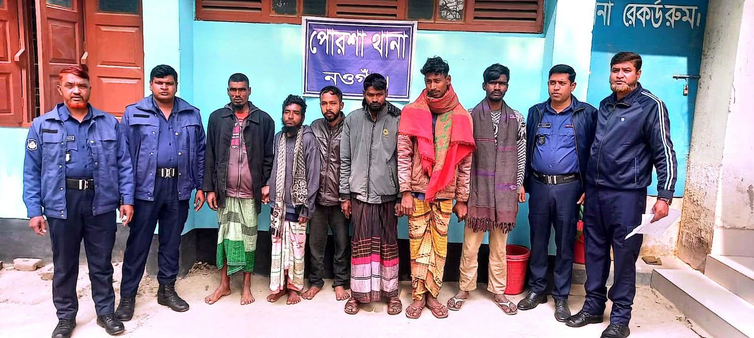 নওগাঁর পোরশায় ভ্রাম্যমান আদালতে ৬ জন মাদক সেবীকে জেলহাজতে প্রেরণ করা হয়েছে জানাগেছে, গোপন সংবাদের ভিত্তিতে শুক্রবার দিবাগত রাত ৮ টার দিকে তাদের শিশা বাজার এলাকা থেকে মাদক সেবন অবস্থায় পোরশা থানা থানা পুলিশ আটক করেন। পরে রাত সাড়ে ১১টার দিকে থানা পুলিশের সমন্বয়ে ভ্রাম্যমান আদালতের মাধ্যমে ২০১৮ সালের মাদকদ্রব্য নিয়ন্ত্রন আইনের ৩৬(৫) ধারা মোতাবেক আটককৃতদের বিভিন্ন মেয়াদে কারাদন্ড ও অর্থদন্ড প্রদান করেন নির্বাহী বিচারক ও সহকারি কমিশনার (ভূমি) মোছাঃ নাবিলা ফেরদৌস। আটকৃতরা হলেন শিশা মেদা গ্রামের সেকেন্দার আলীর ছেলে ফিরোজ (৪০), কোলাপাড়া গ্রামের তাইফ উদ্দিনের ছেলে আব্দুল মান্নান (৪২), খরপা দক্ষিণপাড়া গ্রামের রাজিম উদ্দিনের ছেলে রশিদুল (৪৫), সাপাহার উপজেলার তিলনাচক গ্রামের আশরাফ আলীর ছেলে শাখিল (২৭) ও গোটপাড়া গ্রামের আব্দুল জব্বারের ছেলে দুলাল (৩০) এবং পত্নীতলা উপজেলার লতিফ হোসেনের ছেলে সাদ্দাম (৩৯)। আটকৃতদের শনিবার দুপুরে জেল হাজতে পাঠানো হয়েছে বলে নিশ্চিত করেছেন পোরশা থানা অফিসার ইনচার্জ জিয়াউর রহমান।