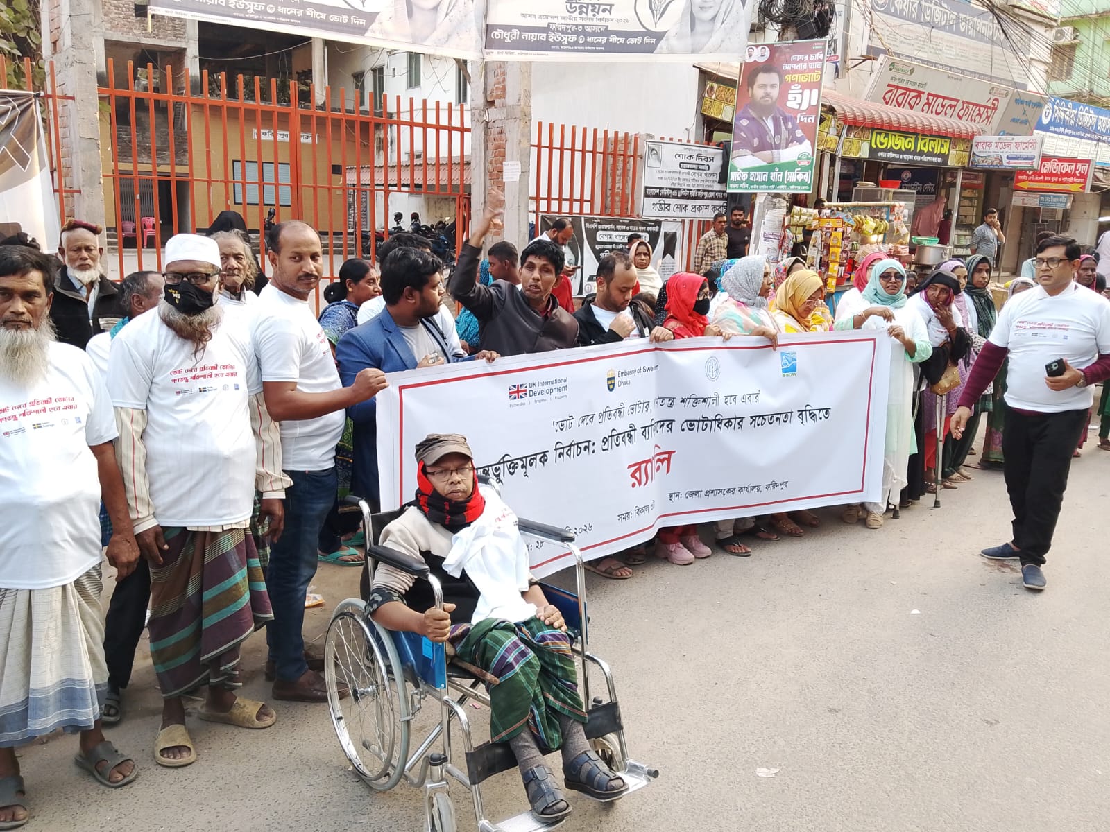 অন্তর্ভুক্তিমূলক নির্বাচন ব্যবস্থা নিশ্চিত ও প্রতিবন্ধী ব্যক্তিদের ভোটাধিকার সম্পর্কে সচেতনতা বৃদ্ধির লক্ষ্যে ফরিদপুরে র্যালি ও সমাবেশ অনুষ্ঠিত হয়েছে।