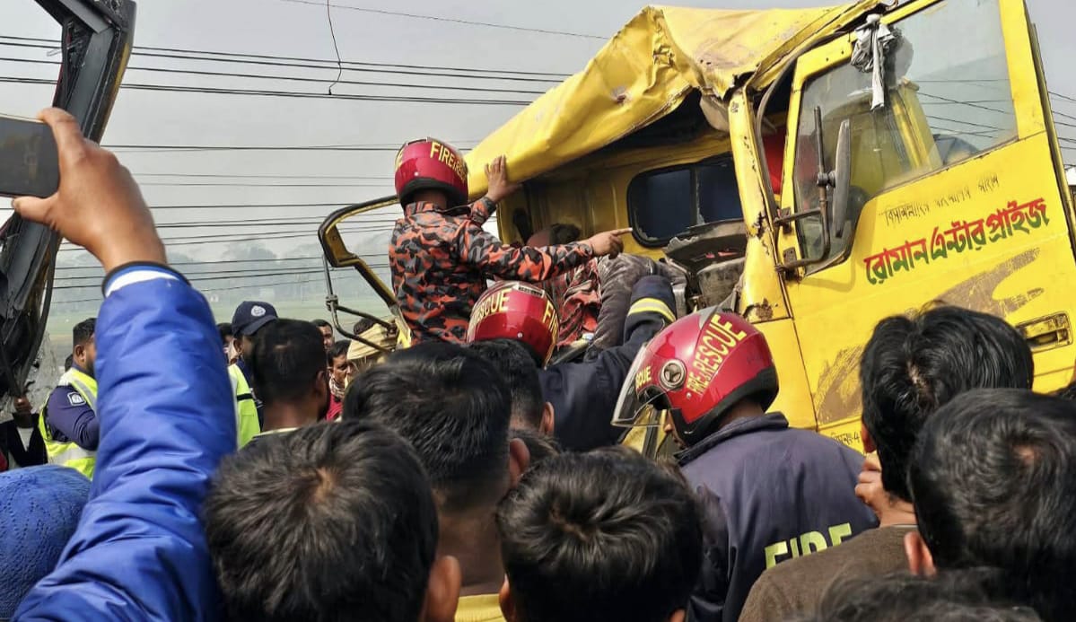 ফরিদপুরের ভাঙ্গায় ট্রাক ও পরিবহন বাসের মুখোমুখি সংঘর্ষে ট্রাকের চালক ও হেলফার নিহত হয়েছেন। এতে আহত হয়েছেন অন্তত ১৫ জন।