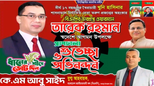 এক শুভেচ্ছা বার্তায় তিনি বলেন, দেশনায়ক তারেক রহমানের স্বদেশ প্রত্যাবর্তন গণতন্ত্রকামী মানুষের জন্য নতুন আশার আলো। তাঁর নেতৃত্বে বিএনপি আরও ঐক্যবদ্ধ ও শক্তিশালী হয়ে গণতন্ত্র পুনরুদ্ধারে অগ্রণী ভূমিকা পালন করবে।