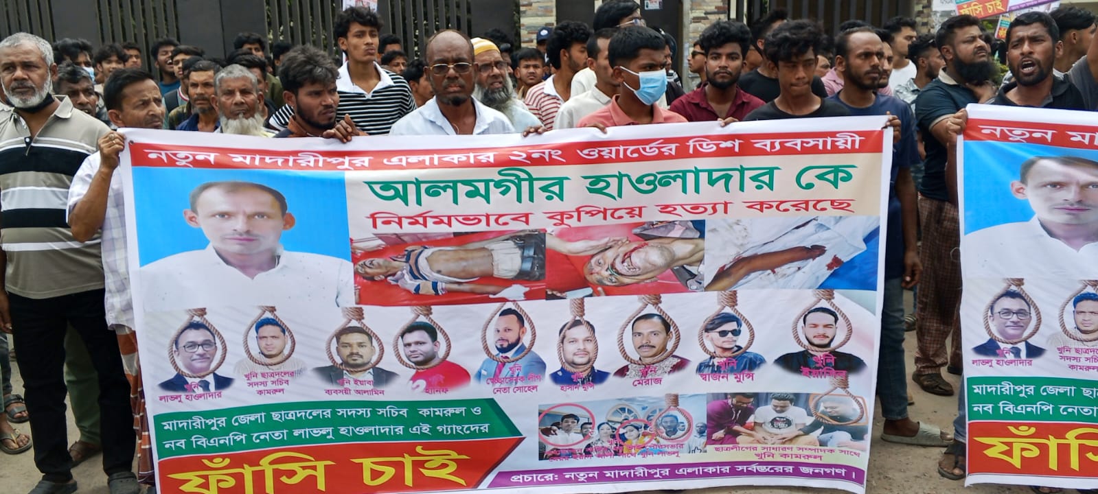মাদারীপুরে আলোচিত আলমগীর হাওলাদার হত্যার প্রতিবাদে মানববন্ধন ও বিক্ষোভ মিছিল করেছেন নতুন মাদারীপুর এলাকার সর্বস্তরের জনগণ। হত্যাকাণ্ডের সঙ্গে জড়িতদের দ্রুত গ্রেপ্তার ও ফাঁসির দাবিতে রোববার (১৫ মার্চ) জেলা প্রশাসকের কার্যালয়ের সামনে এ কর্মসূচি পালন করা হয়।