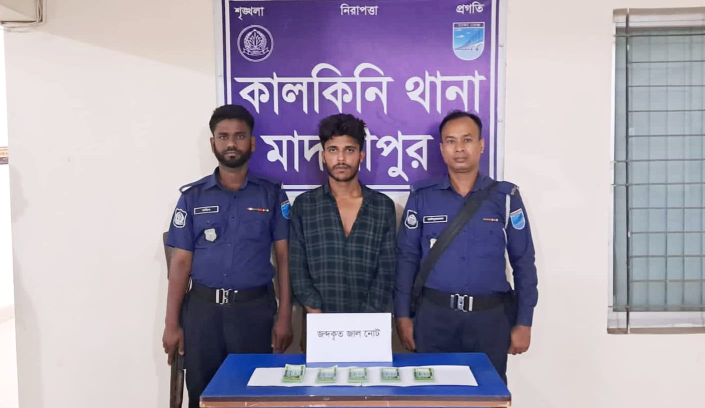 মাদারীপুর জেলার কালকিনি উপজেলায় জাল টাকার কারবারে জড়িত থাকার অভিযোগে আজিজুল বেপারী (২৩) নামে এক যুবককে আটক করেছে পুলিশ।