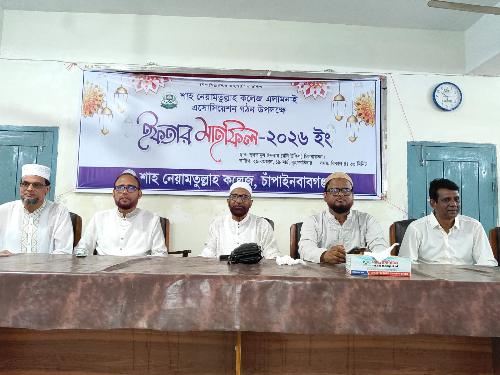 চাঁপাইনবাবগঞ্জের শাহ্ নেয়ামতুল্লাহ কলেজ-এ এলামনাই অ্যাসোসিয়েশন গঠন উপলক্ষে ইফতার মাহফিল অনুষ্ঠিত হয়েছে।
