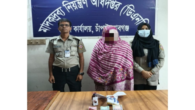 চাঁপাইনবাবগঞ্জের শিবগঞ্জ উপজেলার নামোচাকপাড়া গ্রামে মাদকদ্রব্য নিয়ন্ত্রণ অধিদপ্তরের অভিযানে হেরোইন, ইয়াবা ও কোডিনযুক্ত সিরাপসহ নগদ টাকা উদ্ধার করা হয়েছে। এ ঘটনায় এক নারীকে গ্রেফতার করা হয়েছে।