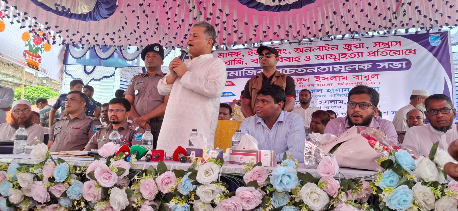 ফরিদপুরের সদরপুরে মাদক, ইভটিজিং, অনলাইন জুয়া, সন্ত্রাস-চাঁদাবাজি, বাল্যবিবাহ ও আত্মহত্যা প্রতিরোধে এক বিশেষ সামাজিক সচেতনতামূলক সভা অনুষ্ঠিত হয়েছে। শনিবার (১৮ এপ্রিল) অনুষ্ঠিত সচেতনামূলক সভায় বিভিন্ন পর্যায়ের জনপ্রতিনিধি, প্রশাসনের ঊর্ধ্বতন কর্মকর্তা এবং গণ্যমান্য ব্যক্তিবর্গ উপস্থিত ছিলেন।