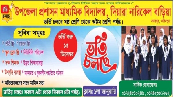 সদরপুরের নারিকেলবাড়িয়া চরে প্রথম মাধ্যমিক বিদ্যালয়ে ভর্তি কার্যক্রম শুরু
