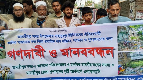 কালিবাজারের ঐতিহ্যবাহী খাল পুনখনন ও সংস্কারের দাবিতে মাদারীপুরে মানববন্ধন