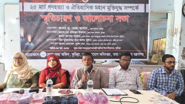 কুমিল্লায় ২৫ মার্চ গণহত্যা ও ঐতিহাসিক মহান মুক্তিযুদ্ধ সম্পর্কে স্মৃতিচারণ ও আলোচনা সভা