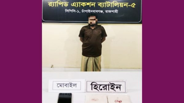 চাঁপাইনবাবগঞ্জে র্যাব-৫ অভিযানে ২০০ গ্রাম হেরোইনসহ মাদক কারবারি গ্রেফতার