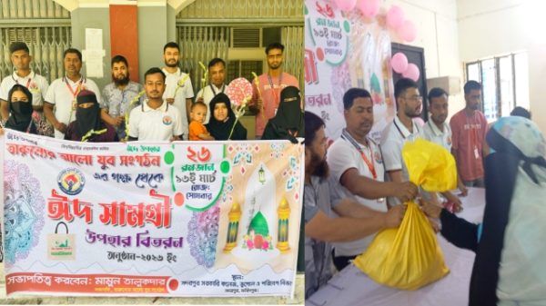 তারুণ্যের আলো যুব সংগঠনের উদ্যোগে অসহায় ও দুস্থদের মাঝে ঈদ উপহার বিতরণ