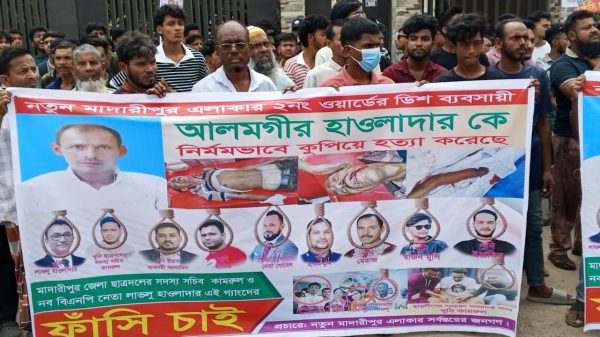 মাদারীপুরে আলমগীর হাওলাদার হত্যার প্রতিবাদে মানববন্ধন ও বিক্ষোভ