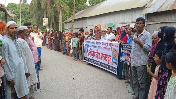ফরিদপুরে টাকার লোভে খালাকে হত্যা: ফাসির দাবিতে এলাকাবাসীর মানববন্ধন