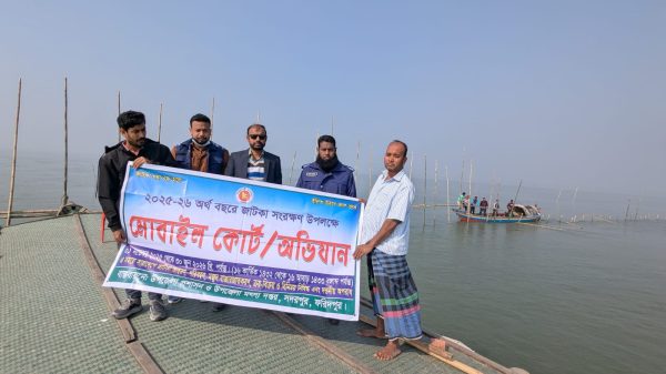 পদ্মানদীতে অবৈধ বাঁধ উচ্ছেদে মৎস্য বিভাগের অভিযান